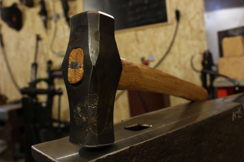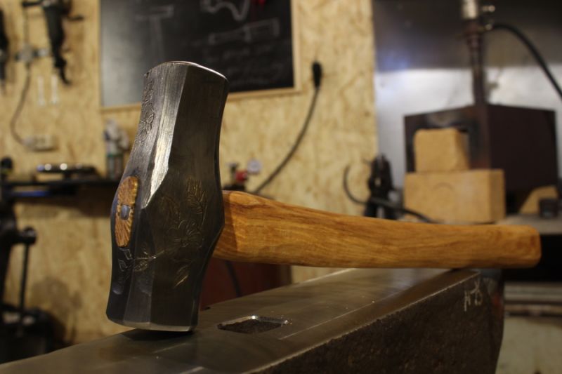 Кузнечный молоток японского типа, сталь У8А, цельнокованый. Зональная закалка рабочей поверхности, отпуск на твердость 50HRC.
