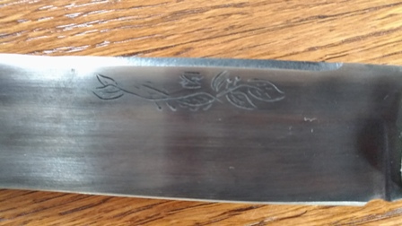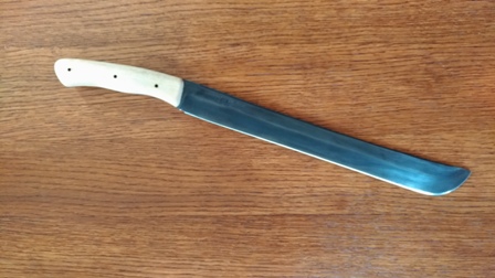 Клинок из стали У8А, закалка на твердость 50 HRC, накладной монтаж рукояти (конструкция фуллтанг).