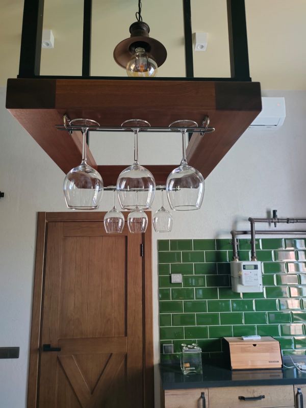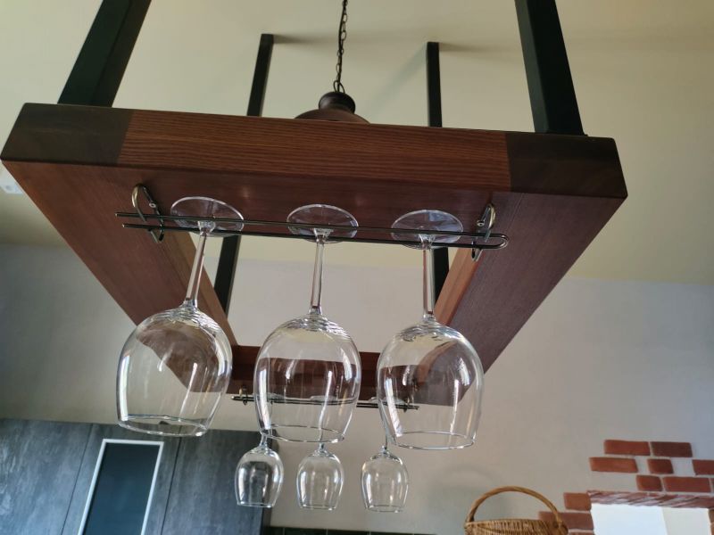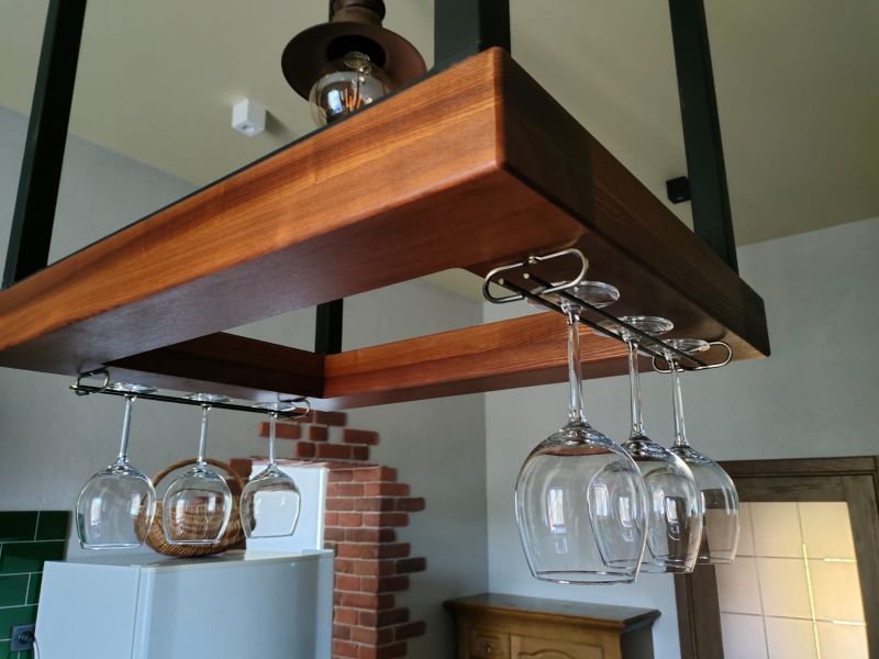 Располагается в центре кухни для подвеса кружек, рюмок и сковородок.