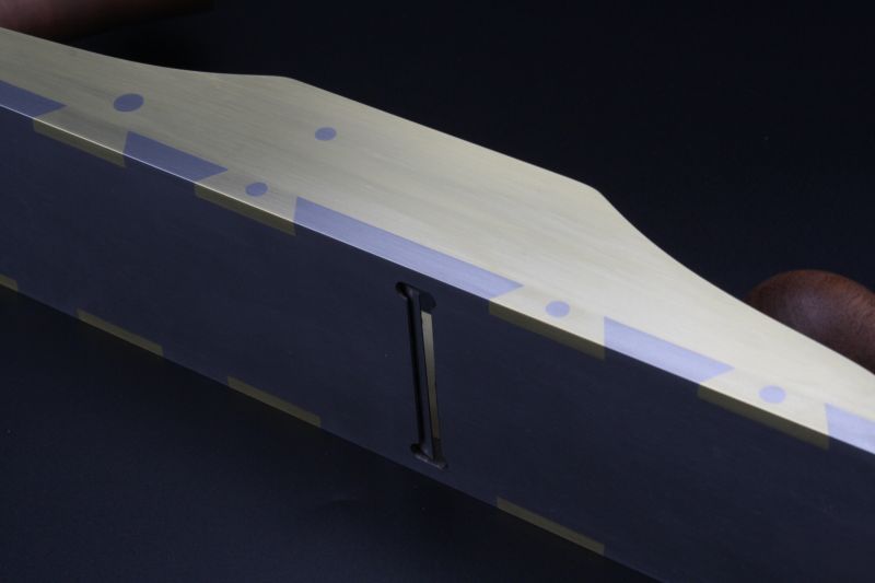 Боковины и прижим лезвия выполнены из латуни, подошва из конструкционной стали.